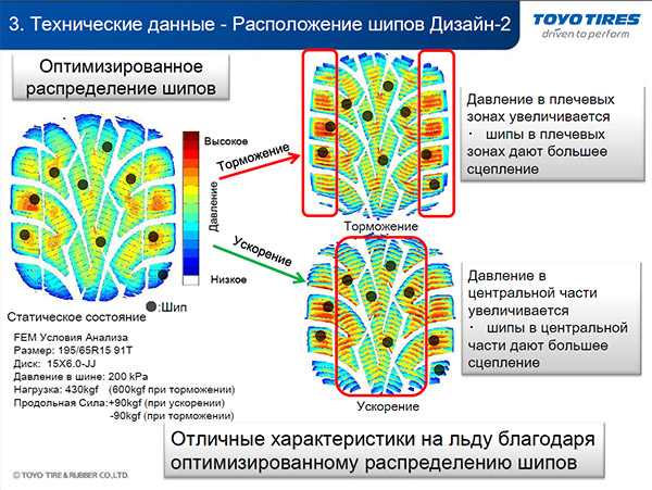 Уникальная японская технология компании Toyo Tires с микрочастицами скорлупы грецкого ореха ("Microbit") в составе резиновой смеси и новый шип обеспечивают отличное сцепления на льду и снегу.